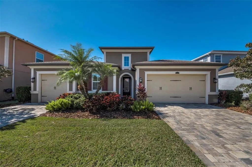 LUXURY POOL & SPA HOME WITH CONSERVATION & WATER VIEWS. A rare opportunity to own this impeccably designed 2016 CalAtlantic home in the highly sought-after GATED community in The Villages of Trinity Lakes (Sago Village). This elegant residence features 4 bedrooms (including 2 en-suites), 3 full baths, 2617 sq. ft. of living space, and a split 3-car garage. Upon entering, you’ll be greeted by 10-foot ceilings, 8-foot custom doorways, and coffered architectural details that set the tone for the home’s refined style. The great room and gourmet kitchen serve as the heart of the home, showcasing beautiful natural light and stunning views of the pool, pond, and conservation backdrop. The chef inspired kitchen is complete with plenty of custom cabinetry, granite counter tops, a half moon shaped center island with 3 pendant lights, stainless steel appliances, including double wall oven, cooktop and sleek canopy hood, walk-in pantry, reverse osmosis, recessed lighting, under the counter lighting with a spacious kitchen nook and sliders to the covered lanai and outdoor kitchen - perfect for entertaining your family and friends. The primary suite, ideally located at the rear of the home for privacy and offers tranquil views and a custom professionally designed walk-in closet. The spa-like primary bathroom boasts a garden tub, walk-in shower, dual vanities, linen closet and private commode closet. This split bedroom floor plan layout provides privacy for guests or family members, including a front located en-suite bedroom with the other two secondary bedrooms having easy access to the third bathroom. Step outside to your resort-style outdoor oasis, complete with a travertine pool deck featuring a custom outdoor kitchen, heated saltwater pool and spa with a serene waterfall feature. The rarely used custom kitchen comes complete with a built-in grill, refrigerator, sink and extra electrical. The designer touches and additional features you will see in this home include formal dining room with a coffered ceiling and crown molding, 8' doors, crown molding, plantation shutters, upgraded fixtures, tile floors in the common areas, separate inside laundry room with a laundry sink, washer, dryer, storage galore, sentricon system, keyless garage door access, gutters, water softener, reverse osmosis, reclaimed water for your irrigation, fenced-in backyard and more. NO CDD FEES, LOW HOA AND NO FLOOD INSURANCE REQUIRED! This HIGHLY SOUGHT AFTER TRINITY COMMUNITY HAS ACCESS to TOP RATED SCHOOLS. It is near golf courses, Starkey/Suncoast/Pinellas Trails, JW GILLS YMCA, shopping, restaurants, medical facilities, the Trinity Community Park that has a dog park, pickleball courts, and a walking trail around a beautiful pond displaying gorgeous sunsets. This home has easy access to Tampa International Airport, St. Pete/Clearwater International Airport, cultural centers, beaches and so much more. TRULY A MUST SEE.