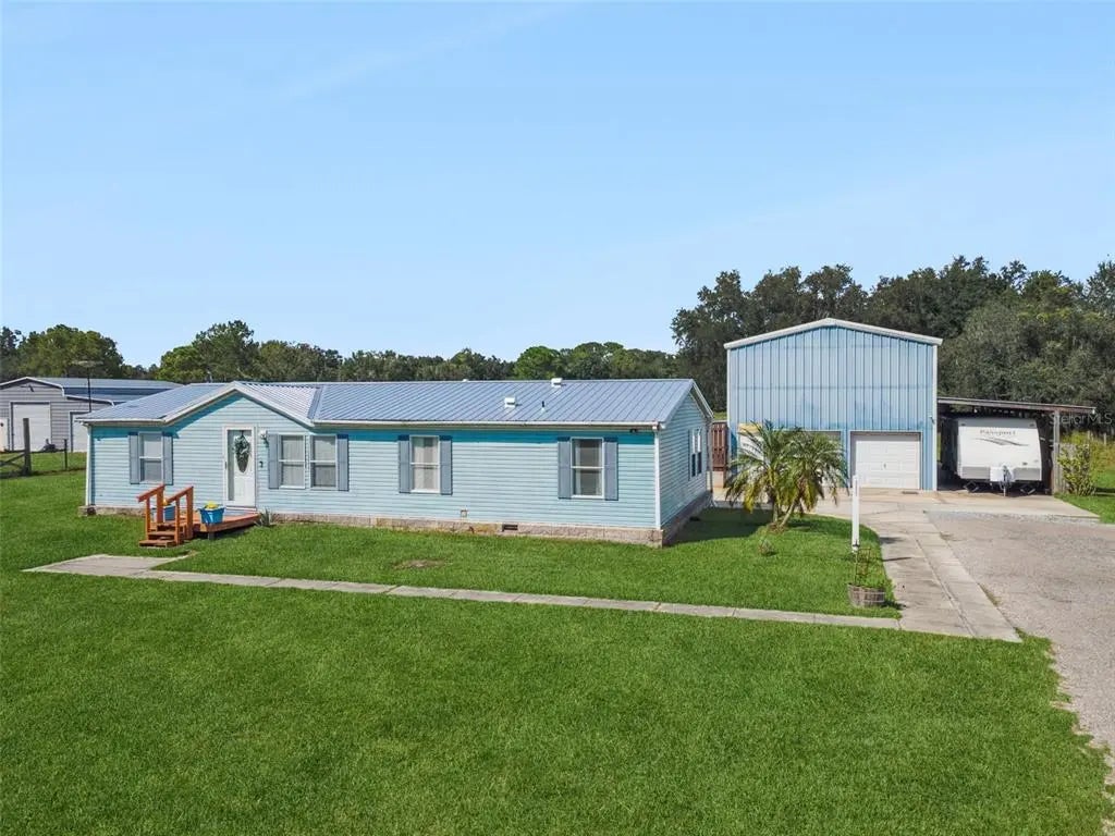 Spacious 3BR/2BA doublewide manufactured home on a beautifully cleared and usable 2.43-acre lot, offering room to roam, garden, park your toys, or simply enjoy peaceful country living. This property includes an oversized Florida room overlooking a gorgeous inground pool, perfect for relaxing, entertaining, or enjoying year-round views of your private backyard oasis. Outside, you'll find a detached garage/workshop with 3 bay doors, ideal for hobbies, vehicles, or storage, plus a covered carport perfect for a camper or boat. The split, open floorplan features updated flooring throughout most of the home (2021), added kitchen cabinetry (2021), new sliding glass doors (2022), and a new metal roof (2025). Additional updates include: new septic drain field (2020), new well pressure tank (2022), new front porch (2023), and updated fencing (2024). Exterior side door to Florida room was just recently replaced in 2025. Whether you're looking for space, functionality, or the perfect entertaining setup—this property checks all the boxes. Come see it today!
